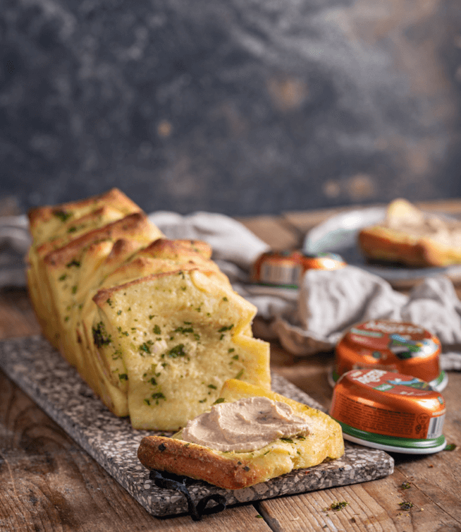 Ko se česnov kruh ohladi, preprosto odtrgamo en kos in ga obilno namažemo z Argeta pašteto. Če še ne veš, s katero, svoj najljubši okus lahko izbereš tukaj.